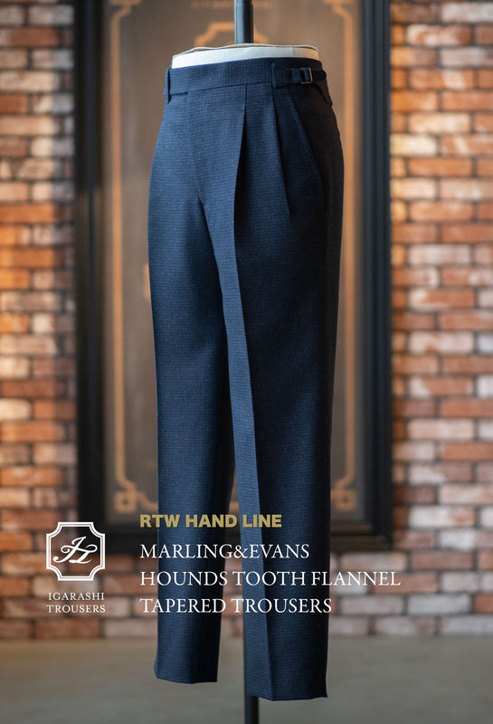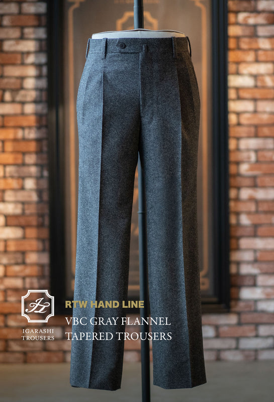IGARASHI TROUSERSの最高峰ラインであるBespokeと同じ縫製方法でつくり上げた既製服は、職人の手作業による念入りなアイロンワークで立体感を楽しむことができ、存分に手間をかけたハンドメイドのBespokeクオリティを体感していただける既製服のコレクションです。
