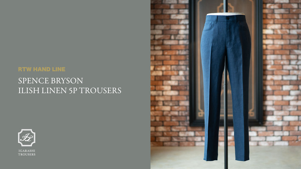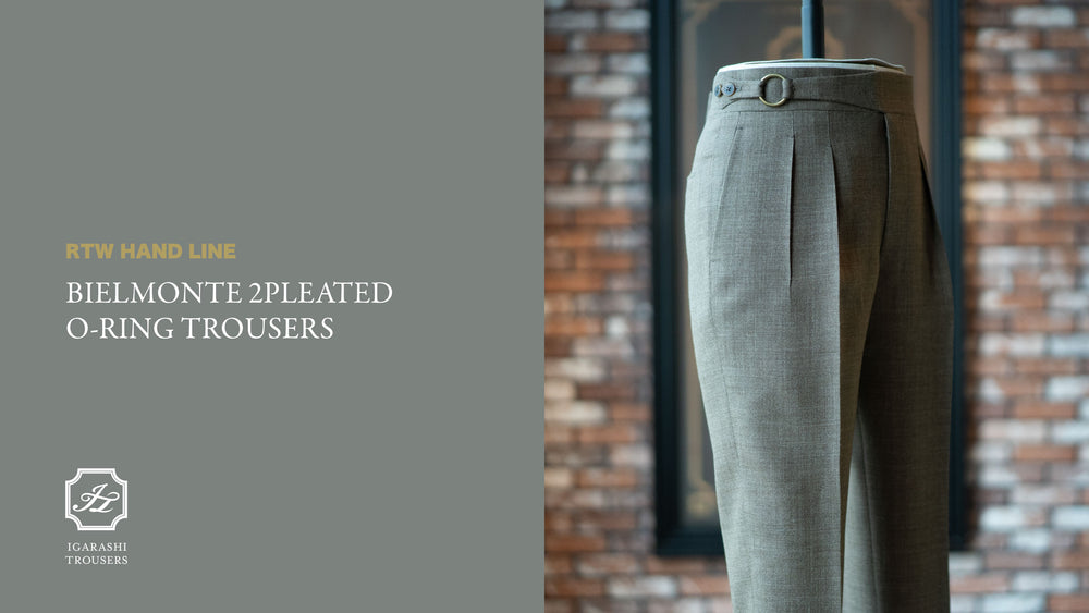 IGARASHI TROUSERSの最高峰ラインであるBespokeと同じ縫製方法でつくり上げた既製服は、職人の手作業による念入りなアイロンワークで立体感を楽しむことができ、存分に手間をかけたハンドメイドのBespokeクオリティを体感していただける既製服のコレクションです。